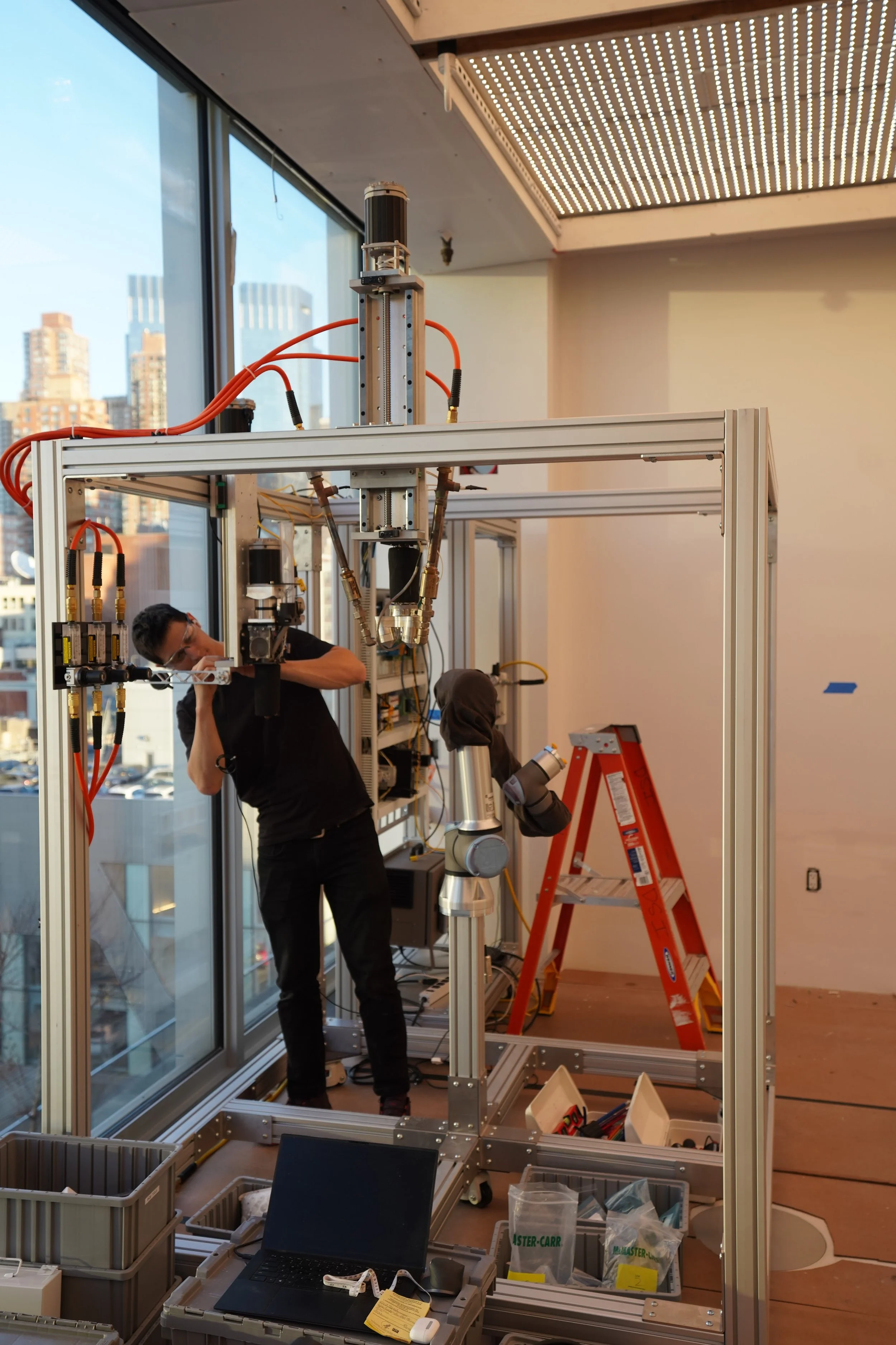 I owned core development across robotic fabrication system architecture, mechanical design, non-planar toolpaths, integration of kinematic systems, controls integration for periphery devices, and product-facing embodiments.